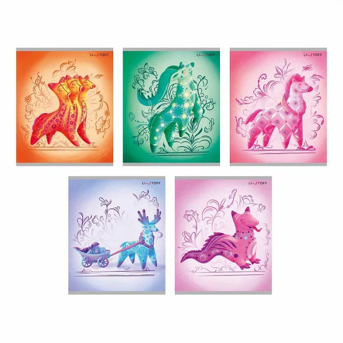 Тетрадь А5 48л. Скрепка. Клетка. Обл.: мел. картон, выб. лак, блестки "Серебро". Бум. оф.60 г/м2. Поля. В уп. 5 видов. Уп./гофр. по 10 шт. в терм. пл.. "Яркая дымка (Эксклюзив)"