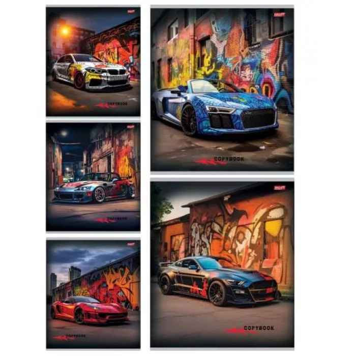 Тетрадь КЛЕТКА 48л. АВТО НА ФОНЕ ГРАФФИТИ - 1 (48-5747) цвет. мелов. обл. 48-5747