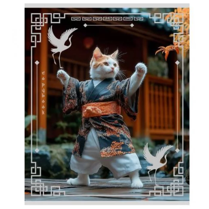 Тетрадь КЛЕТКА 48л. АЗИАТСКИЕ КОТИКИ (Т48-6476), серебро, 5+0, лён Т48-6476