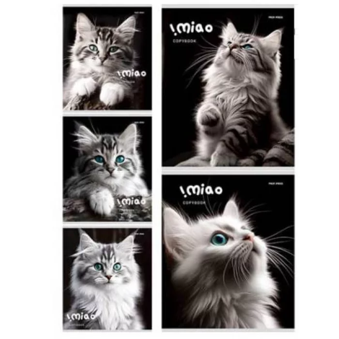 Тетрадь КЛЕТКА 48л. ЧЁРНО-БЕЛЫЕ КОТИКИ (48-4807) цветная мелованная обложка 48-4807