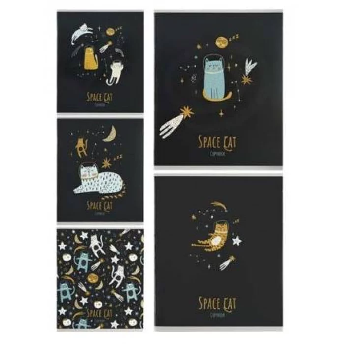 Тетрадь КЛЕТКА 48л. КОТЫ И КОСМОС (48-7019) цвет мел обл, глиттер неон. 48-7019