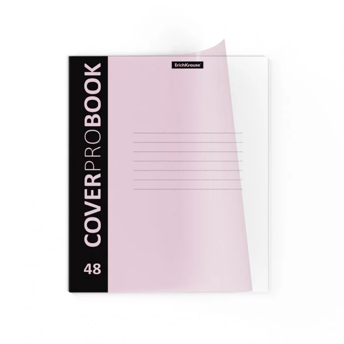 Тетрадь общая ученическая с пластиковой обложкой на скобе ErichKrause® CoverProBook Pastel, розовый, А5+, 48 листов, клетка 55228