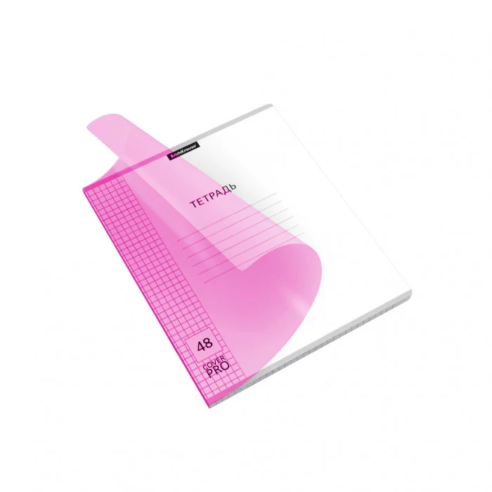 Тетрадь общая ученическая с пластиковой обложкой на скобе ErichKrause® Классика CoverPrо Neon, розовый, А5+, 48 листов, клетка 56393