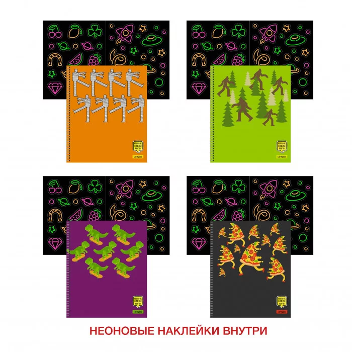 Смешная команда Тетради А5 48л. Гребень. Клетка. Обл.: мел. картон,твин лак.Бум.оф.60 г/м2.46 л+2 листа с неоновыми наклейками