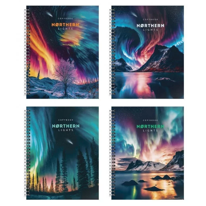 Тетрадь 48 л. А5+ кл. греб. офс. Schoolformat СЕВЕРНОЕ СИЯНИЕ мел. карт., спл. УФ-лак 249227