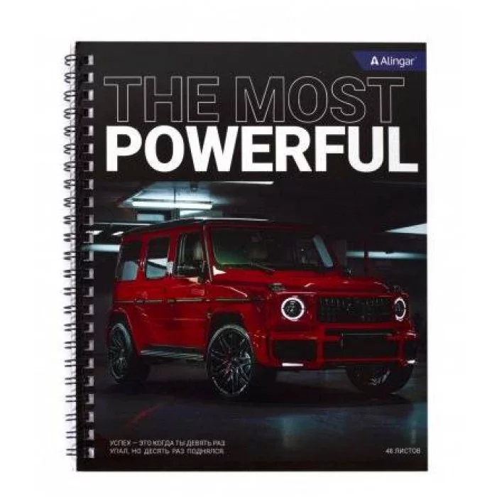 Тетрадь 48л., клетка, Alingar, гребень, блок офсет, мелованный картон стандарт), "The most powerful" AL9252
