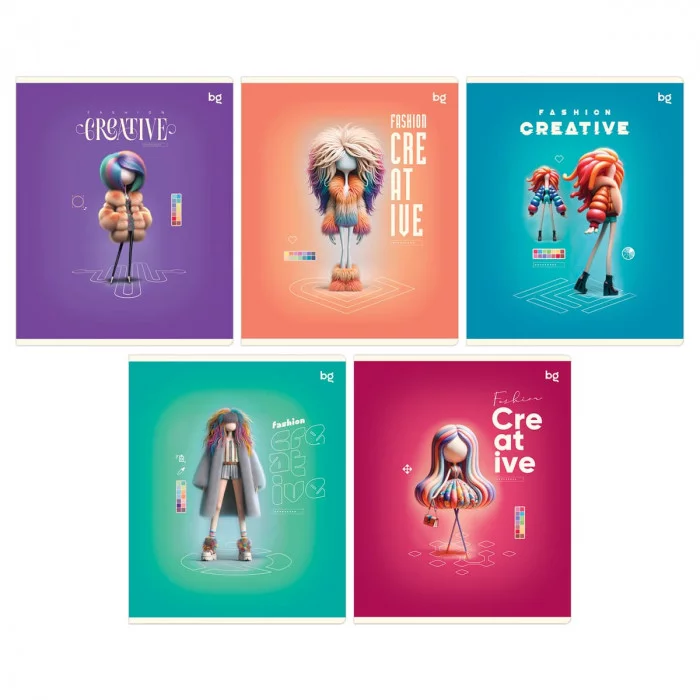 Общая тетрадь BG "Fashion creative" в клетку с полями подходит для конспектирования. Формат изделия — А5 (165*205 мм). Внутренний блок на скрепке состоит из 60 листов офсетной бумаги плотностью 60 г/м². Обложка выполнена из мелованного картона с использованием глянцевой ламинации и вырубки. Количество листов: 60; Линовка: клетка с полями; Формат: А5 (165*205 мм); Белизна: 100 %; Крепление: скрепка; Плотность блока: 60 г/м2; Материал обложки: мелованный картон.