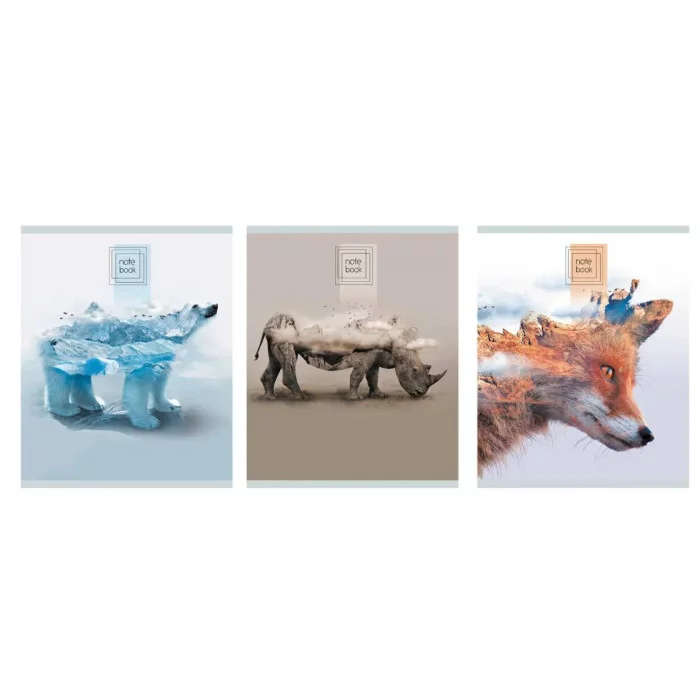 Тетрадь общая А5 формата, на скрепке от Эксмо. Предназначена для ежедневных записей. Востребована среди студентов вузов, офисных сотрудников из разных сфер и домашнего использования. Необычные дизайны выполнены в стиле стихий, которые собраны в диких животных. Обложка тетради изготовлена из мелованного картона. Внутренний блок: 80 листов, офсетная бумага (60гр/м2), в клетку и красными полями.