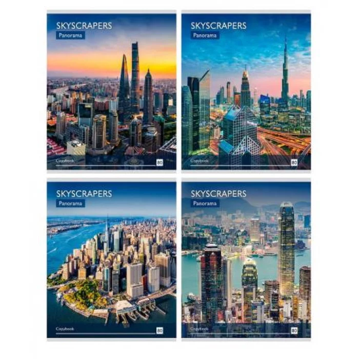 Тетрадь КЛЕТКА 80л. НЕВЕРОЯТНЫЕ НЕБОСКРЕБЫ (80-9416) цвет.мелов.обл. 80-9416