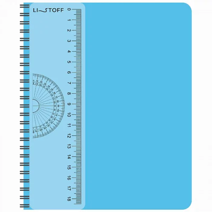 Тетрадь А5- 80л. Гребень. Клетка. Обложка: цветной пластик. Бумага белый офсет 60г/м2. Скругл.углы. Съемная линейка из прозрачного пластика. "Голубая тетрадь"