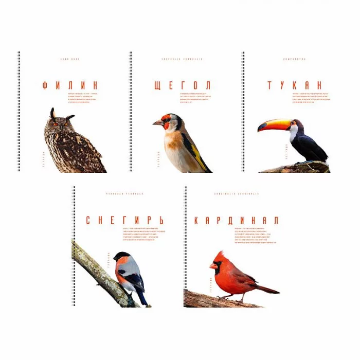 Тетрадь А5 80л. Гребень. Клетка. Обл.: мелованный картон, глянцевая ламинация. Бум. офсет 60г/м2. "Красивые птицы"