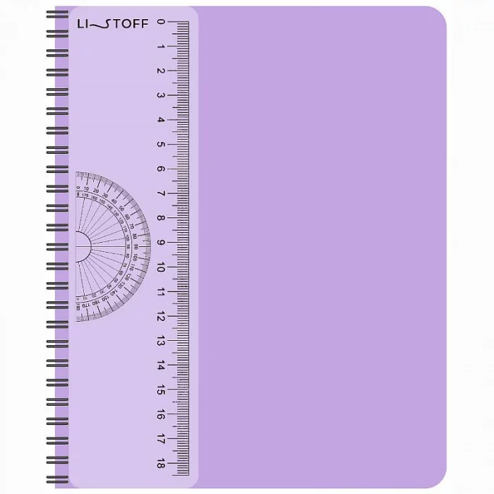 Тетрадь А5- 80л. Гребень. Клетка. Обложка: цветной пластик. Бумага белый офсет 60г/м2. Скругл.углы. Съемная линейка из прозрачного пластика. "Лавандовая тетрадь"