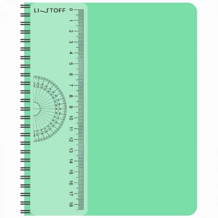 Тетрадь А5- 80л. Гребень. Клетка. Обложка: цветной пластик. Бумага белый офсет 60г/м2. Скругл.углы. Съемная линейка из прозрачного пластика. "Мятная тетрадь"
