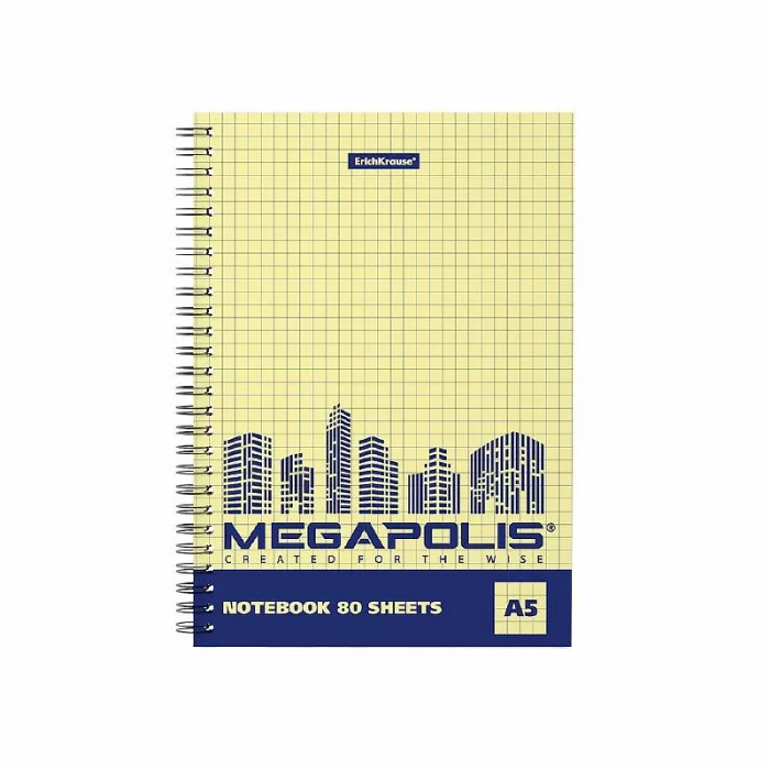 Тетрадь общая на спирали ErichKrause MEGAPOLIS® Yellow Concept, А5, 80 листов, клетка, желтый внутренний блок 49803