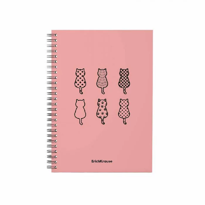Тетрадь общая с пластиковой обложкой на спирали ErichKrause Powder, Cats, розовый, А5, 80 листов, клетка 59526
