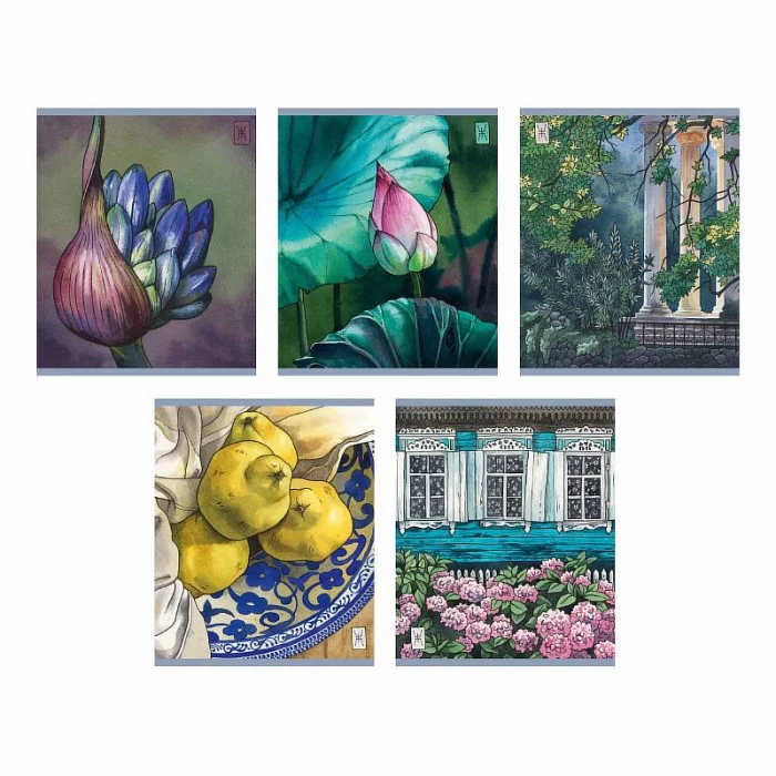 Тетрадь А5 96л. Скрепка. Клетка. Обложка: мелованный картон, ламинация "soft touch". Бумага: белый офсет 60г/м2. "Акварель (Эксклюзив)"