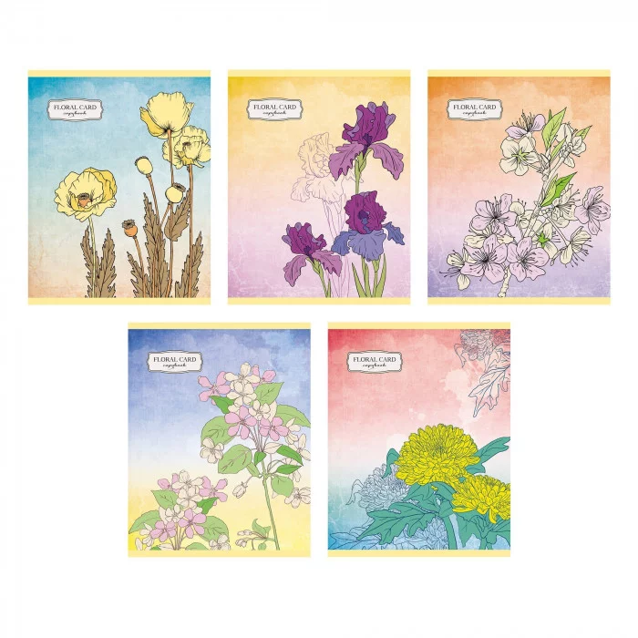 Тетрадь общая "Полевые цветы" (ассорти 5 дизайнов) ТМ "Listoff", на скобе. Приятно вести записи в тетради, которая вдохновляет и радует одним своим видом. Создана для современной молодёжи, с учётом актуальных и развивающихся мировых трендов. Обложка: цветной мелованный картон. Вид отделки обложки: полноцветная печать, twin-лакирование сохраняет изображение при любых условиях эксплуатации и придаёт тиражу презентабельный эффектный вид. Внутренний блок: 96 листов, офсетная бумага в клетку плотностью 60 г/м2, белизна 100%. Чёткая линовка и красные поля соответствуют высокому качеству полиграфии. Гладкие и приятные на ощупь странички идеально подходят для разных видов пишущих принадлежностей. Блок и обложка скреплены металлическими скобами. Тетрадь подходит для использования в школах, высших учебных заведениях, для дома и офиса.