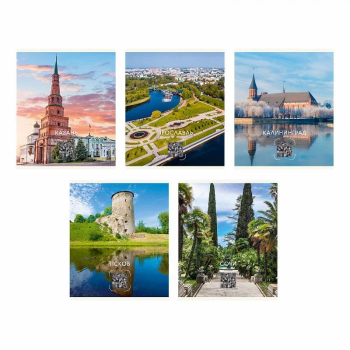 Тетрадь А5 96л. Скрепка. Клетка. Обл.: мел. картон, мат. ламин. Бум. оф.60 г/м2. "Путешествия по России"