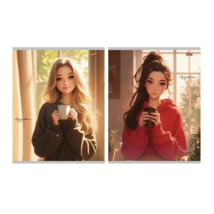 Тетрадь КЛЕТКА 96л. ДЕВУШКИ С КОФЕ (96-9526) (обл. - мелов.картон) 96-9526