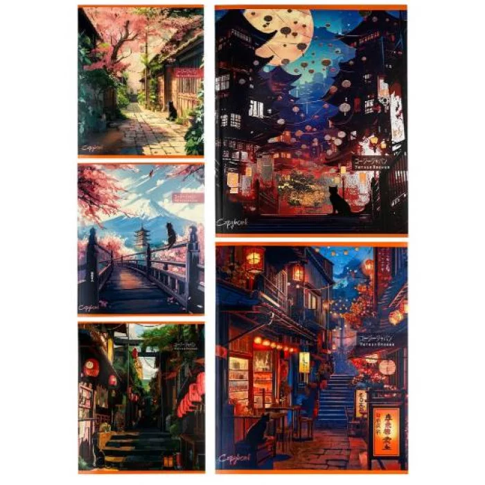 Тетрадь КЛЕТКА 96л. ПЕЙЗАЖИ ИЗ АНИМЕ (96-8442) , твин-лак, холодное тис 96-8442