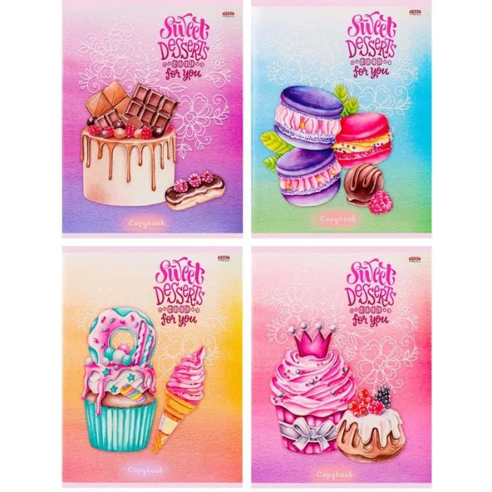 Тетрадь КЛЕТКА 96л. СЛАДКИЕ ДЕСЕРТЫ (96-8040) глиттер, цвет.мелов.обл. 96-8040