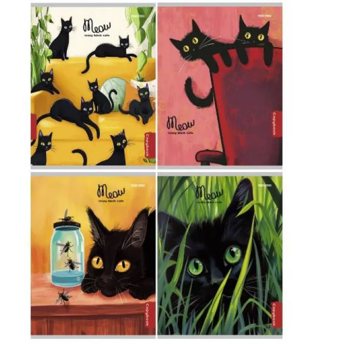 Тетрадь КЛЕТКА 96л. ЖИЗНЬ ЧЁРНЫХ КОТИКОВ (96-8433) (цвет.мелов.обл. перевертыши) 96-8433