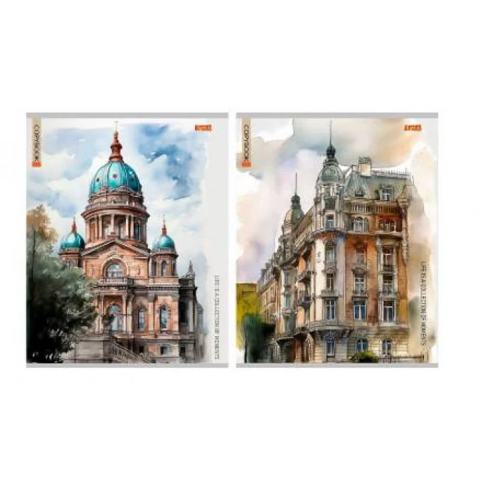 Тетрадь ЛИНИЯ 96л. ГОРОДА В АКВАРЕЛИ (96-9533) обл- мелов.картон, второй блок 96-9533