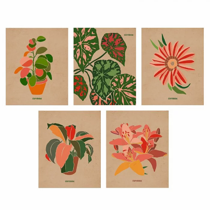 Тетради А5 96л. Скрепка. Клетка. Обл.: крафт картон, полноцветная печать Бум. 60 г/м2. В уп. 5 видов. Уп./гофр. по 5 шт.в. терм. пл. Ботанический сад ТКК967289