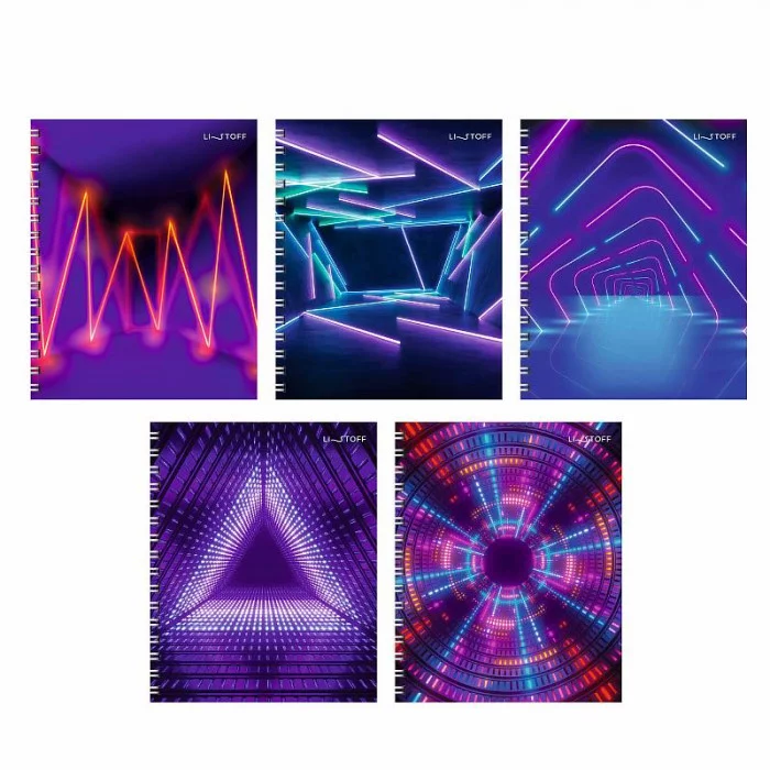 Тетрадь А5 96л. Гребень. Клетка. Обложка: мелованный картон, ламинация Chameleon. Бумага белый офсет 60г/м2. "Неоновые лучи"