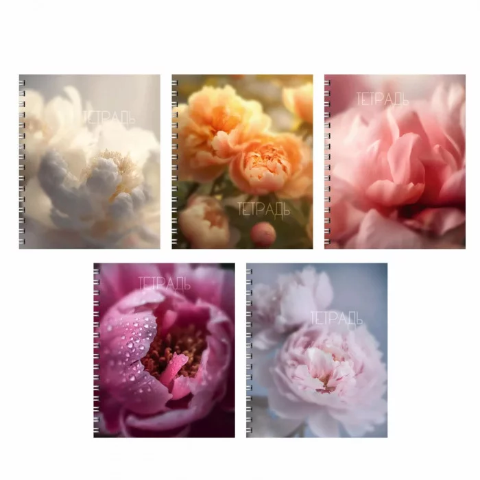 Тетради А5 96л. Гребень. Клетка. Обложка: мелованный картон, ламинация Soft Touch. Бумага белый офсет 60г/м2 Цветочная поэзия ТС968852