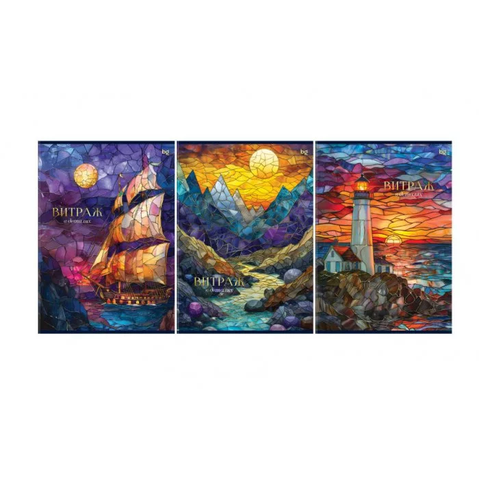 Тетрадь 96л., А4, клетка BG "Витраж", глянцевая ламинация, тиснение фольгой 378743