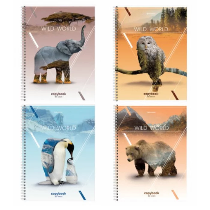 Тетрадь А4, 80 л., BRAUBERG, гребень, клетка, глянцевый лак, WILD, 404052