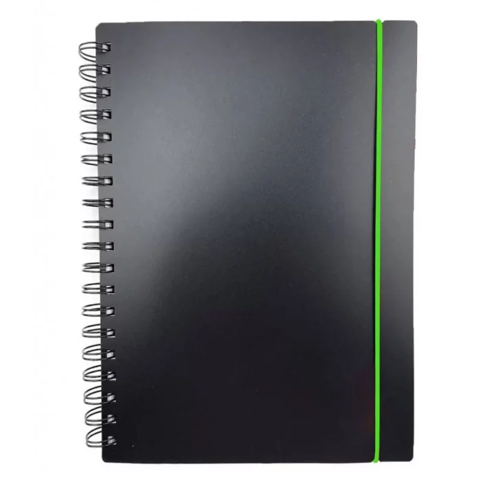 Тетрадь FAVORITE BLACK – это воплощение элегантности и практичности. Изысканный черный пластик, который защищает листы бумаги от влаги и каплей. Тетрадь на пружине удобна в использовании. Невесомая резинка фиксирует страницы, позволяя свободно погрузиться в процесс и не тратить время на поиск записей. Ощутите безупречное сочетание стиля и функциональности.