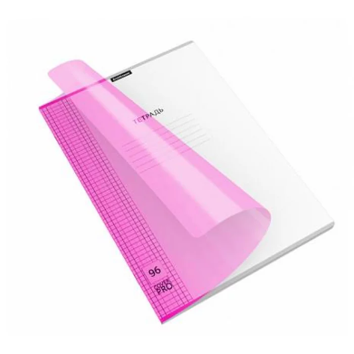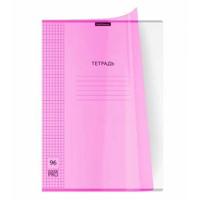 Тетрадь общая ученическая с пластиковой обложкой на скобе ErichKrause Классика CoverPrо fizzy Neon розовый А4 96 листов клетка 56422