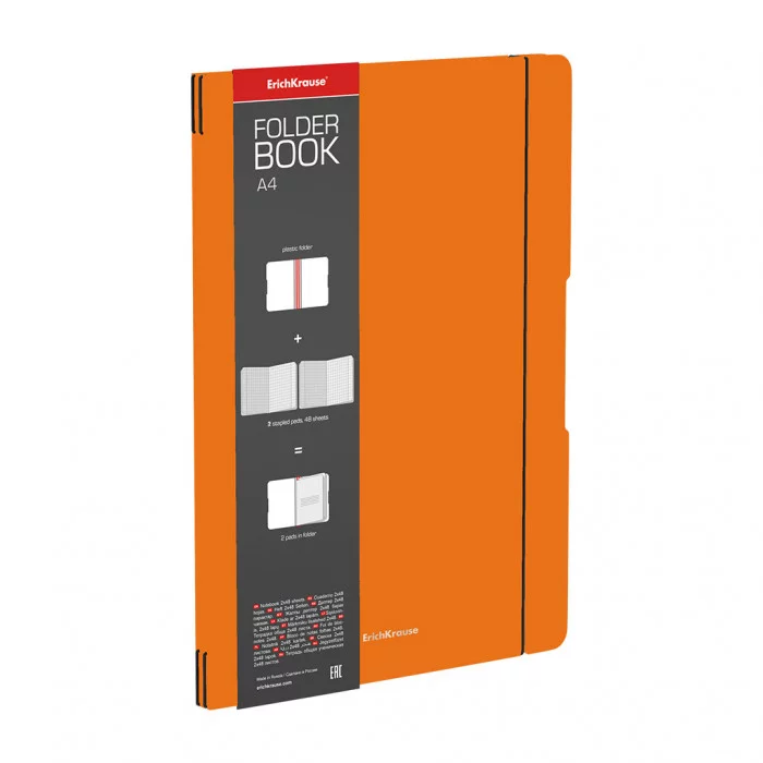 Тетрадь общая ученическая в съемной пластиковой обложке ErichKrause® FolderBook Neon, оранжевый, А4, 2x48 листов, клетка 56107