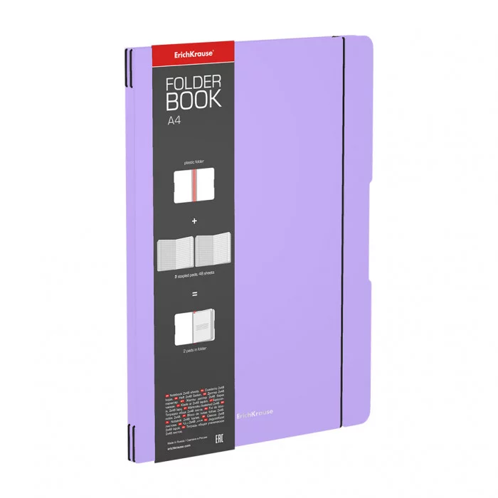 Тетрадь общая ученическая в съемной пластиковой обложке ErichKrause® FolderBook Pastel, фиолетовый, А4, 2x48 листов, клетка 56119