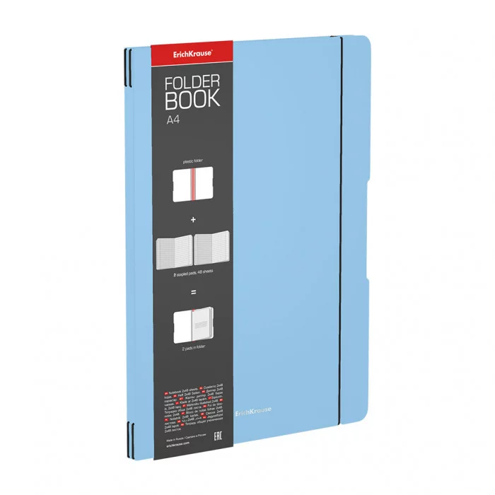 Тетрадь общая ученическая в съемной пластиковой обложке ErichKrause® FolderBook Pastel, голубой, А4, 2x48 листов, клетка 56123