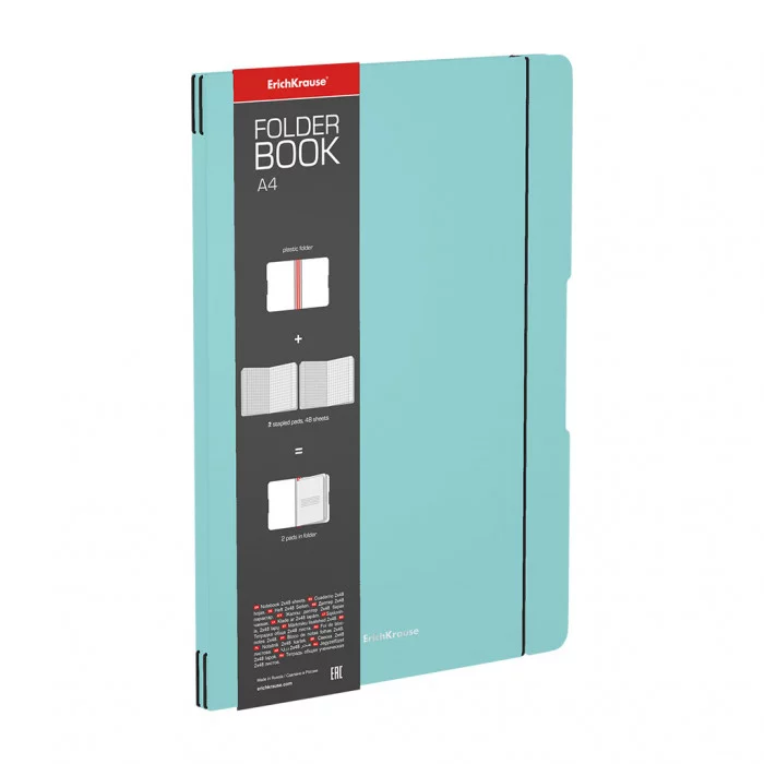 Тетрадь общая ученическая в съемной пластиковой обложке ErichKrause® FolderBook Pastel Mint, А4, 2x48 листов, клетка 56127