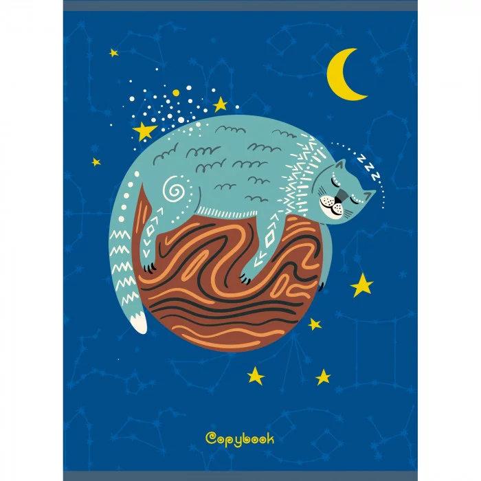 Тетради А4 48л для конспектов.Скрепка.Клетка.Обл.:мел.карт, печать по метал.плен.серебро,твин-лак.Бум. оф.60 г/м2.Скр.уг. Звездные сны