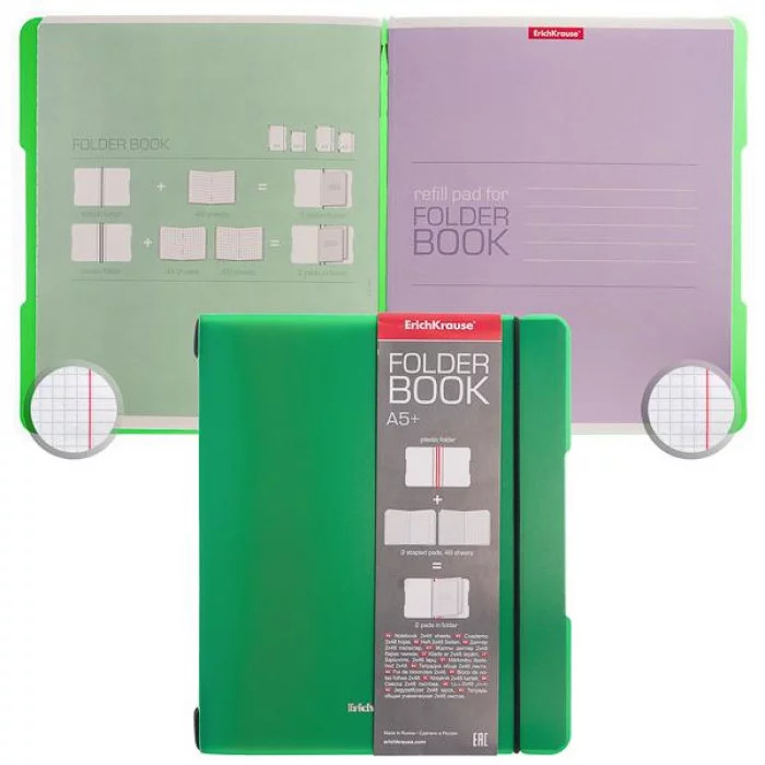 Тетрадь 2*48л клетка двойная/пластик "FolderBook" зеленый резинка ERICH KRAUSE 48022 224407