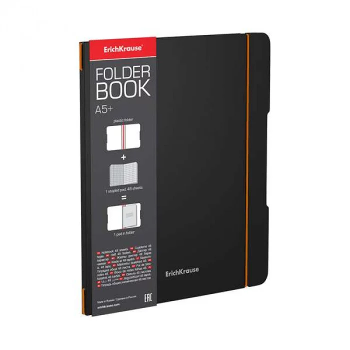 Тетрадь 48л клетка пластик "FolderBook Accent" черный резинка оранжевая ERICH KRAUSE 51432 220150