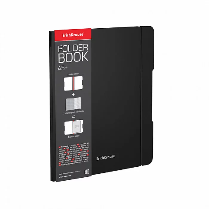 Тетрадь А5+ 48л клетка пластик "Folder Book" черный резинка ERICH KRAUSE 48016 224023
