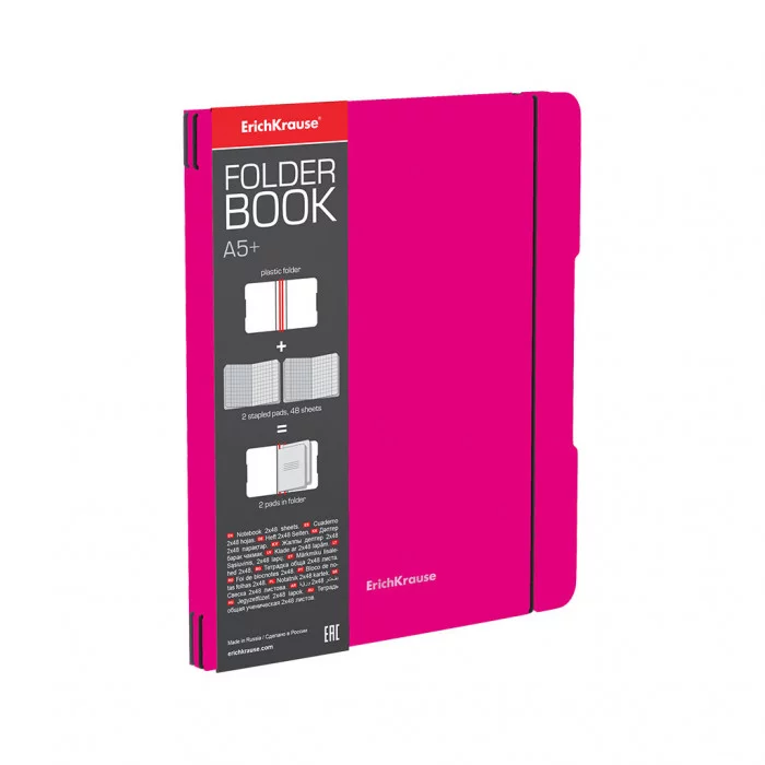 Тетрадь общая ученическая в съемной пластиковой обложке ErichKrause® FolderBook Neon, розовый, А5+, 2x48 листов, клетка 56105