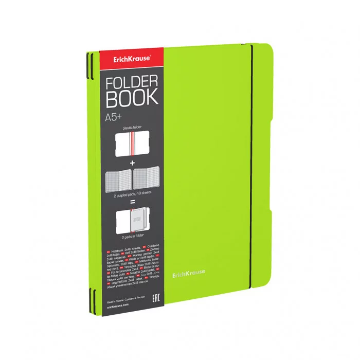 Тетрадь общая ученическая в съемной пластиковой обложке ErichKrause® FolderBook Neon, зеленый, А5+, 2x48 листов, клетка 56113