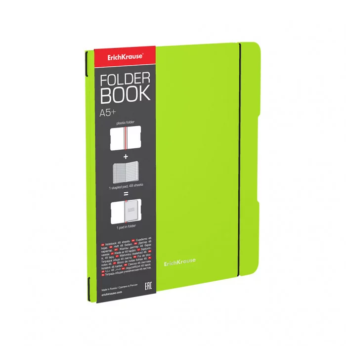 Тетрадь общая ученическая в съемной пластиковой обложке ErichKrause® FolderBook Neon, зеленый, А5+, 48 листов, клетка 56112