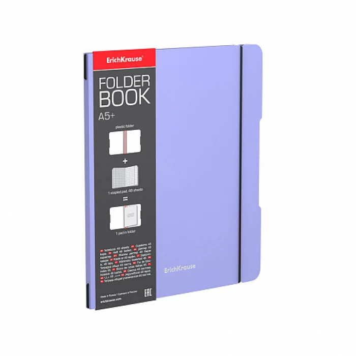 Тетрадь общая ученическая в съемной пластиковой обложке ErichKrause® FolderBook Pastel, фиолетовый, А5+, 48 листов, клетка 51392