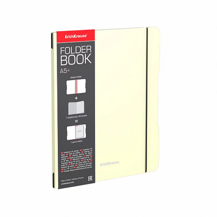 Тетрадь общая ученическая в съемной пластиковой обложке ErichKrause® FolderBook Pastel, желтый, А5+, 48 листов, клетка 51395