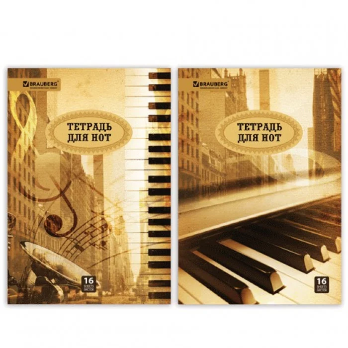 Тетрадь для нот А4, 16л., BRAUBERG обл.мел.карт., вертикальная, Город звуков (2 вида), 125415