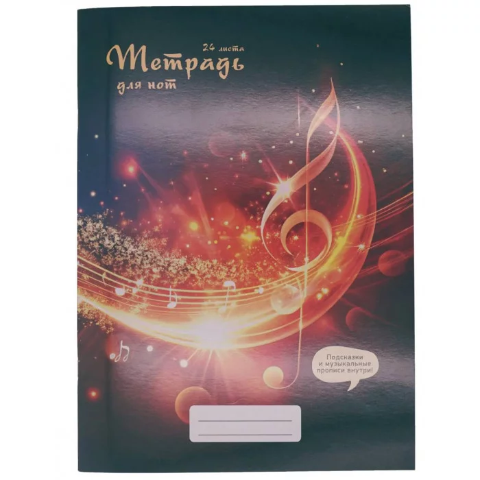 Тетрадь для нот А4 24л Скрепка Обложка мелованный картон 230г/м2 глянцевая ламинация Бумага офсет 70г/м2