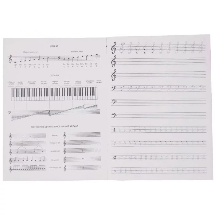 Тетрадь для нот А4 формата для начинающих музыкантов Listoff – отличный инструмент для записи и изучения нотной грамоты. Рекомендована для записи нот различной сложности в музыкальных учреждениях и занятий дома. Востребована среди дошкольников и школьников начальных классов. Тетрадь отличает качество исполнения: удобный формат, плотная обложка из мелованного картона (230гр/м), белый внутренний блок (70гр/м), вертикальная ориентация (книжная), четкая линовка и широкий стан (5 строк), простые и понятные музыкальные шпаргалки. Милейшие персонажи на обложке, будут радовать юные таланты весь год. Количество листов: 24 листа. Крепление: скрепка, по длинной стороне.